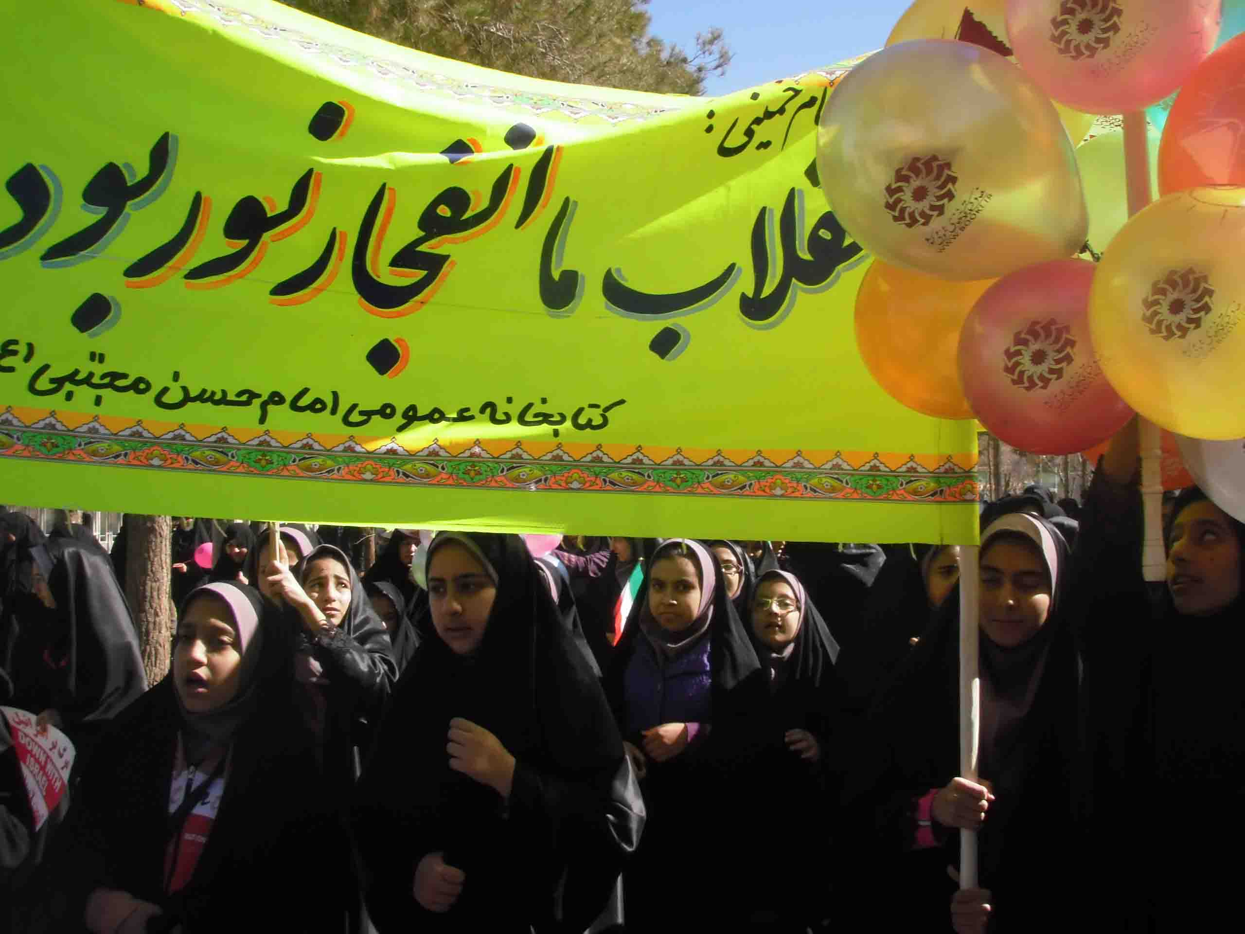 نوجوانان كتابخانه امام حسن مجتبي(ع) آمده بودند تا هم‌چون بزرگ‌ترهایشان عشق خود را به میهن‌شان اثبات کنند  و با حضور در راهپیمایی امروز نشان دادند همچون گذشتگان خود بر آرمان‌های امام، انقلاب و شهدا پایبندند.