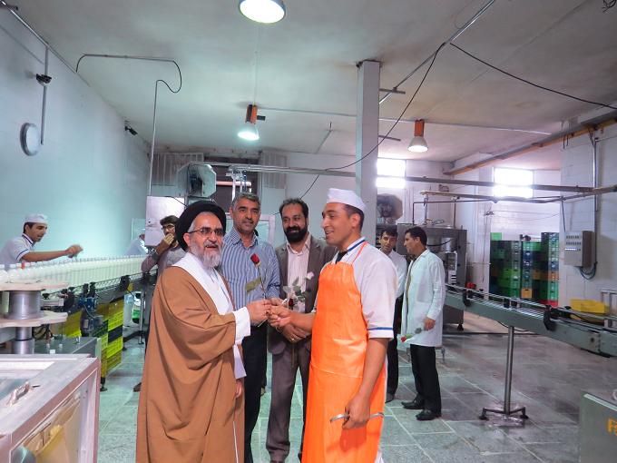 ابرکوه خبرنگار یزدفردا مهدی کارگر " به مناسبت هفته کار وکارگر بازدید حجت الاسلام والمسلمین سید ابراهیم حسینی امام جمعه ابرکوه ، مهندس ناصر زارع رئیس تعاون كار و رفاه اجتماعی ،مهندس عباس حمیدی زاده رئیس تامین اجتماعی شعبه ابرکوه وسید مسعود میرحسینی رییس صنعت، معدن و تجارت ابرکوه از بخش های مختلف شرکت تعاونی لبنیات اعلا ابرکوه بازدید کردند.