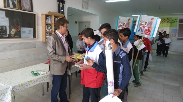 سرکار خانم شهرستانی اضافه کرد : همچنین کتاب محله عاری از دخانیات جهت مطالعه وشرکت در مسابقه پیامکی بین دانش آموزان توزیع گردید سپس دانش آموزان مواد غذایی تاریخ گذشته، تنقلات کاذب و ناسالم را به درون ماشین زباله ریخته ومعدوم نمودند ودر محوطه ماکتهای سیگار را لگد کوب نمودند وبه جای آن شاخه های از گل قرار دادند.
