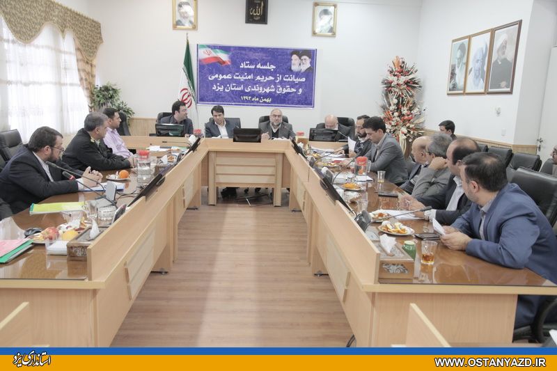 به گزارش اداره کل روابط عمومی استانداری یزد جلسه ستاد صیانت از حریم امنیت عمومی و حقوق شهروندی استان یزد با حضور جانشین و بازرس ستاد صیانت وزارت کشور ، معاون سیاسی ، امنیتی و اجتماعی استاندار یزد ، فرمانداران شهرستانها و مدیران کل استانی عضو این ستاد صبح چهارشنبه 15 بهمن ما در سالن حمیدیا استانداری برگزار شد.