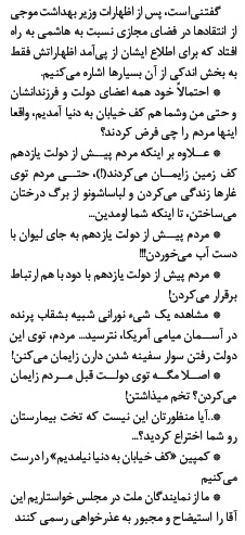از دولت انتقاد کنید، اگر جایی تخلفی کرده است، در بوق و کرنا کنید کما این که به درستی بحث فیش های حقوقی چند مدیر افشاگری شد ولی به خاطر سالم نگه داشتن جامعه ای که خودمان در آن هستیم و قرار است فرزندان مان در آن زندگی کنند، اینقدر دروغ و بی اخلاقی و عقده گشایی پمپاژ نکنید.