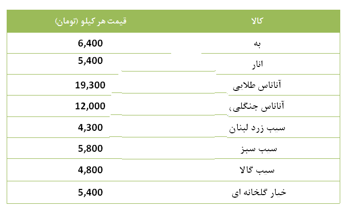 یزدفردا : قیمت انواع میوه دستچین در میادین میوه و تره بار به شرح زیر است: