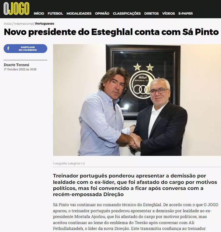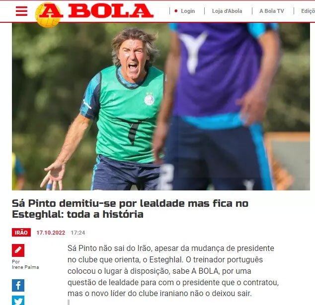 رسانههای دیگر پرتغال از جمله maisfutebol، desporto.sapo و cmjornal هم گزارشهای مشابهی درباره سرمربی استقلال منتشر کرده اند.