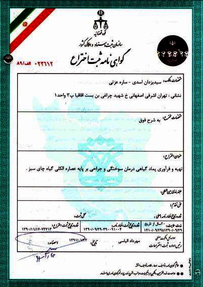 به گزارش ایرنا، طرح تهیه و فرآوری پماد گیاهی درمان زخم سوختگی و جراحی بر پایه عصاره الكلی گیاه چای سبز، با شماره 73713 در اداره ثبت اختراعات سازمان مالكیت صنعتی به ثبت رسیده است.
