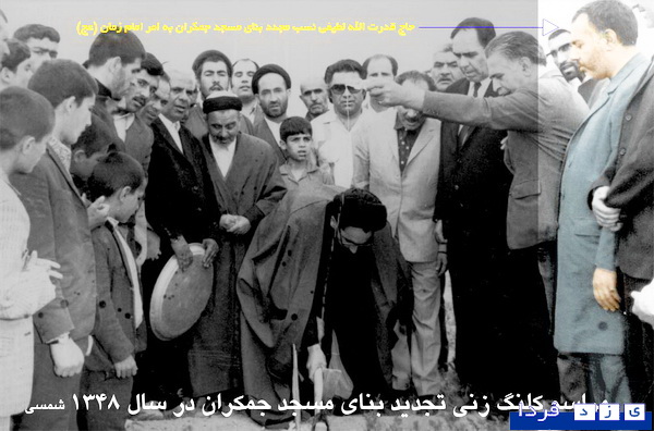 حضرت بلافاصله فرمودند: «شما سراغ آقای احمدی بروید. او خودش کارهای شما را درست میکند». بعد از آن، حضرت(ع) کارتی به دست من دادند که یک طرف آن اسماء الله بود و و طرف دیگر آن نقشة جدید مسجد با یک گنبد و دو گلدسته و قسمت مردانه و زنانه با زیرزمین آن. فرمودند: «این نزد تو باشد ما آن را به موقع از تو میگیریم». امتثال کردم و آن را گرفتم و بوسیدم. آنگاه، حضرت به محراب کوچک وسطی از سه محراب قدیمی مسجد رفتند و حدود یک ساعت مشغول عبادت و راز و نیاز شدند. بعد از آن خداحافظی کردند و تشریف بردند.»
