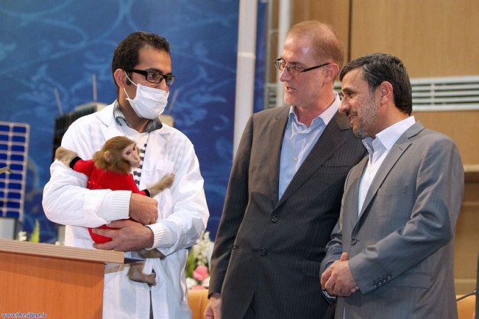 احمدی نژاد در بازدید از میمون فضانورد (عکس)