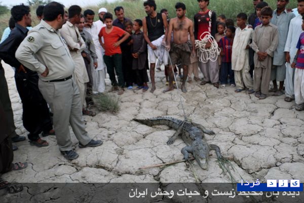 گزارش تصویری ازتلاش نيروهاى محيط زيست سيستان ومردم در زنده گیری تمساح مهاجمی که موجب مرگ کودک 10 ساله سیستانی شده بود