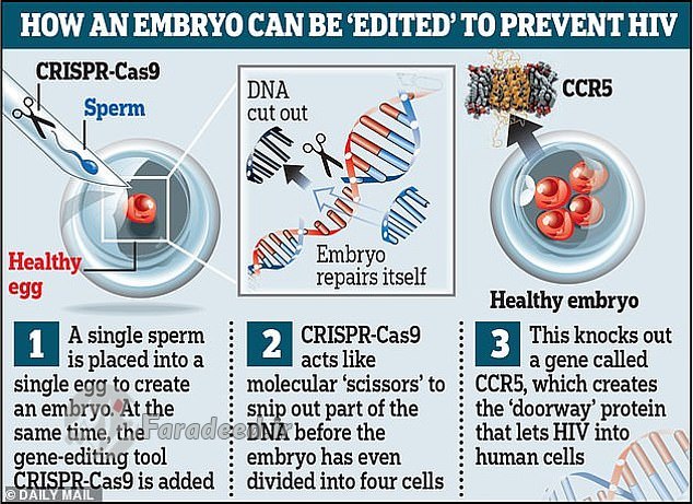 دانشمند چینی، هی شیانکیو اوایل سال جاری اعلام کرد که از تکنولوژی کریسپر برای اصلاح ژنهای جنینهایی در آزمایشگاه استفاده کرده تا آنها را در مقابل ویروس اچآیوی که از پدرشان بهارث میبردند، محافظت کند.