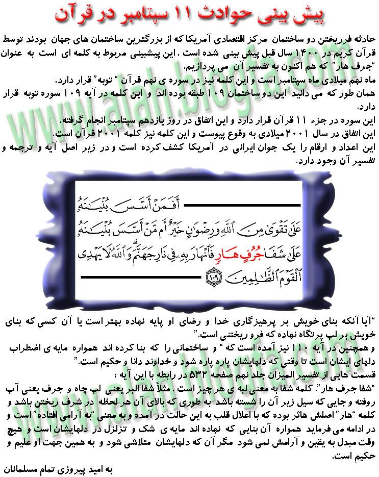 پیش بینی حوادث 11 سپتامبر در قرآن