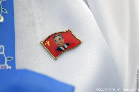 هر شهروند در کره شمالی، نشانی از «کیم ایل سونگ» بر سینهی خود دارد؛ به جز کودکان و خدمتکاران که احتمالا این نشان به دلیل پوشیدن لباس کار مخفی شده است. شما نمیتوانید این نشان را خریداری کنید.