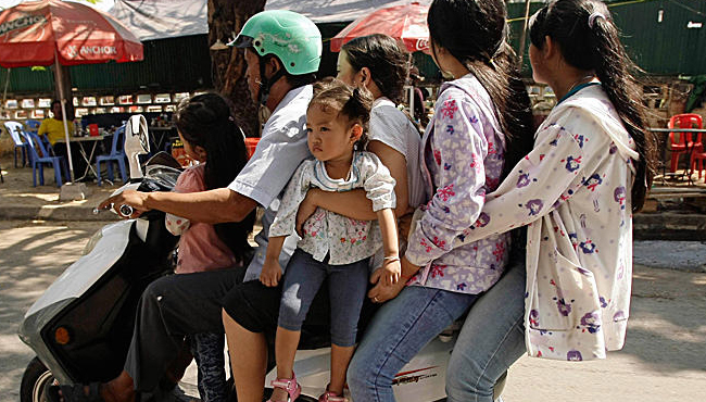 عکس/ خانواده پرجمعیت کامبوجی پشت موتور