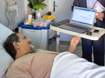آنچه در نگاه اول، به چشممان خورد، لپ تاپ و تجهیزات اتصال به اینترنت بود که در کنار تخت وی گذاشته شده بود البته  وی با فروتنی آن را مورد استفاده همراهانش دانست.