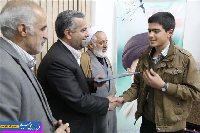 به گزارش پایگاه خبری یزدفردا "25نفر از خواهران و برادران ورزشکار و نوجوانان که در مسابقات قرآنی در رشتههای حفظ، قرائت ترتیل، احادیث موضوعی، مفاهیم قرآنی، اذان، قرائت تحقیق و آیات موضوعی شرکت و بهعنوان نفرات برتر این مسابقات شناختهشده بودند با حضور فرماندارمیبد، مسئول دفتر امامجمعه و رئیس اداره ورزش و جوانان شهرستان میبد با اهداء لوح تجلیل شدند.