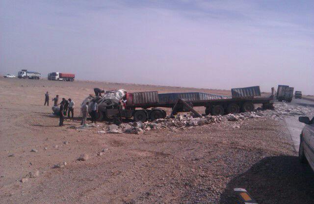 واژگونی یک دستگاه تریلر در محور میبد به یزد 2 مصدوم بر جای گذاشت.