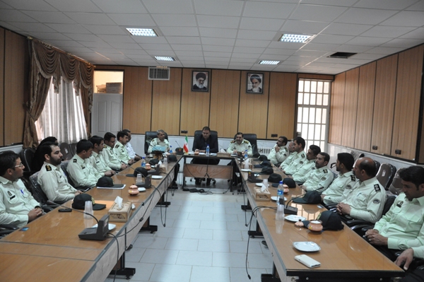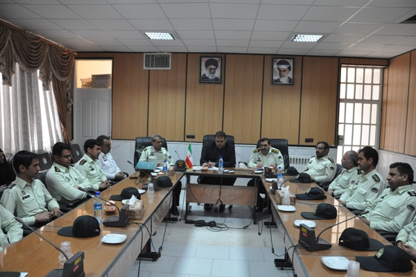 نشست فرماندار خاتم با فرمانده،، رؤساي كلانتري، فرماندهان پاسگاه و مديران ستادي منطقه انتظامي شهرستان خاتم