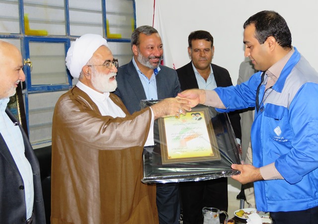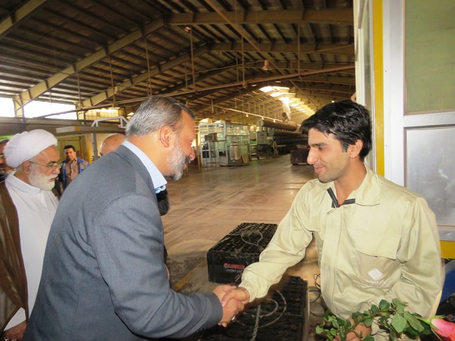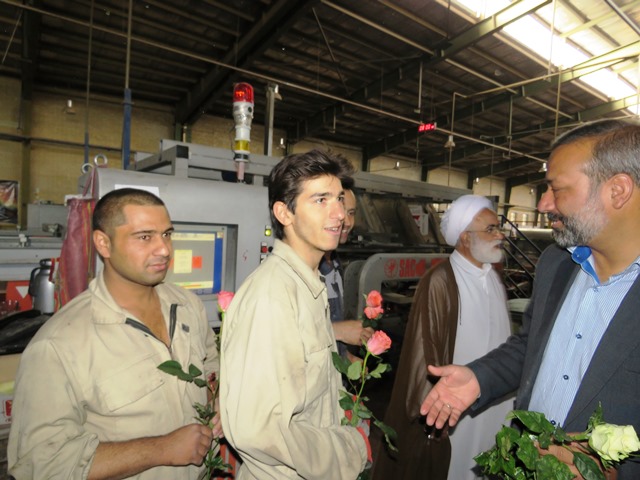 فرماندار و امام جمعه تفت در ادامه با حضور در خط توليد شركت نوين سرام ضمن آشنايي با مراحل مختلف تهيه و توليد محصولات اين مركز از نزديك با كارگران اين شركت ملاقات و با اهداء شاخه هاي گل اين روز را به آنان تبريك گفتند.