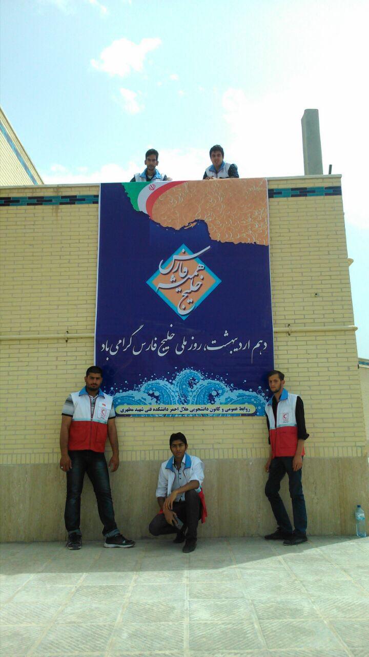 به گزارش روابط عمومی جمعیت هلال احمر استان یزد / جلیل کهدویی رئیس جمعیت هلال احمر شهرستان تفت اظهار داشت : این مراسم با هدف گرامیداشت روز ملی خلیج فارس با حضور جمعی از دانشجویان و اساتید و مسئولین دانشکده فنی شهید مطهری برگزار شد.