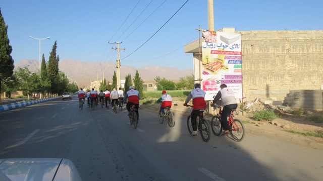 به گزارش روابط عمومی جمعیت هلال احمر استان یزد / محسن زارعیان سرپرست جمعیت هلال احمر مهریز اظهار داشت : این همایش به مناسبت هفته هلال احمر با حضور 80 نفر دوچرخه سوار جوانان ، امدادگران و داوطلبان جمعیت هلال احمر از مسیر حسینیه شهدای گمنام  تا تفرجگاه غربالبیز  رکاب زدند.