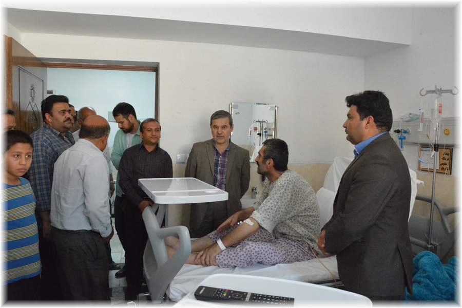 به گزارش روابط عمومي، امورفرهنگي و اجتماعي اداره کل ميراث فرهنگي، صنايع دستي و گردشگري استان يزد، بهمن نامور مطلق معاون صنايع دستي سازمان میراث فرهنگی، صنایع دستی و گردشگری کشور به همراه جمعي از مسئولان ميراث فرهنگي استان با حضور در بيمارستان گودرز يزد از محمد علي غني پور عيادت کردد.