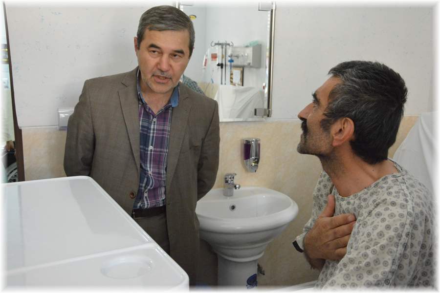 در اين ديدار که جمعي از هنرمندان صنايع دستي استان يزد هم حضور داشتند دکتر نامور مطلق در گفت و گو با پزشکان در جريان آخرين مراحل درمان استاد غني پور قرار گرفت.