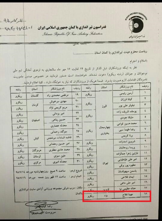 خبر راهیابی مبینا فلاح یکی از نخبگان ورزشی شهرستان بافق به تیم ملی تیر اندازی با کمان باعث خوشحالی و مسرت همگان گردید.