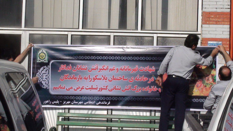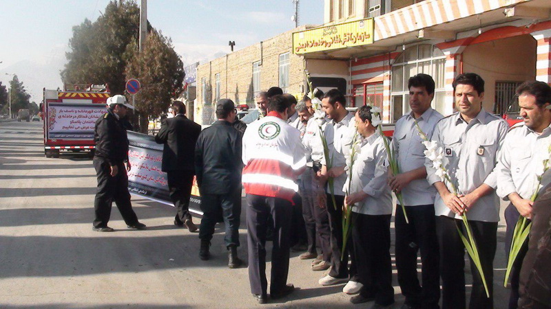 در این مراسم با اهداء شاخه های گل به آتش نشانان ابراز همدردی کرده و برای شادی روح شهدای آتش نشان حادثه ساختمان پلاسکو فاتحه قرائت کردند