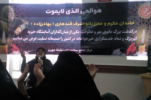 وی در 5 اسفندماه ۱۳۹۵ در سن ۹۱ سالگی در شمیران درگذشت و در خانه خود یعنی آسایشگاه خیریه کهریزک که سال ها دل در گرو آبادانی آن داشت برای همیشه آرمید.