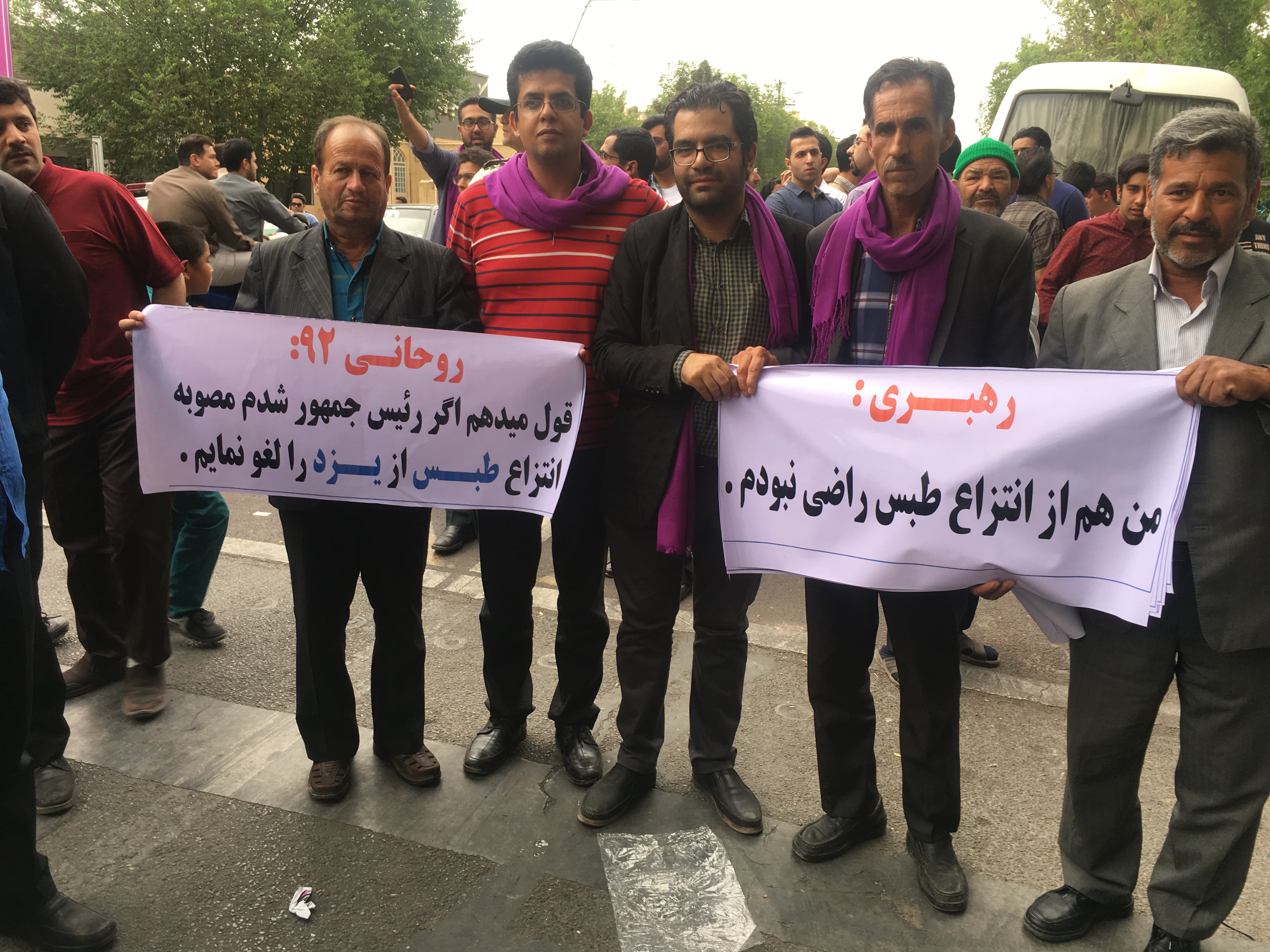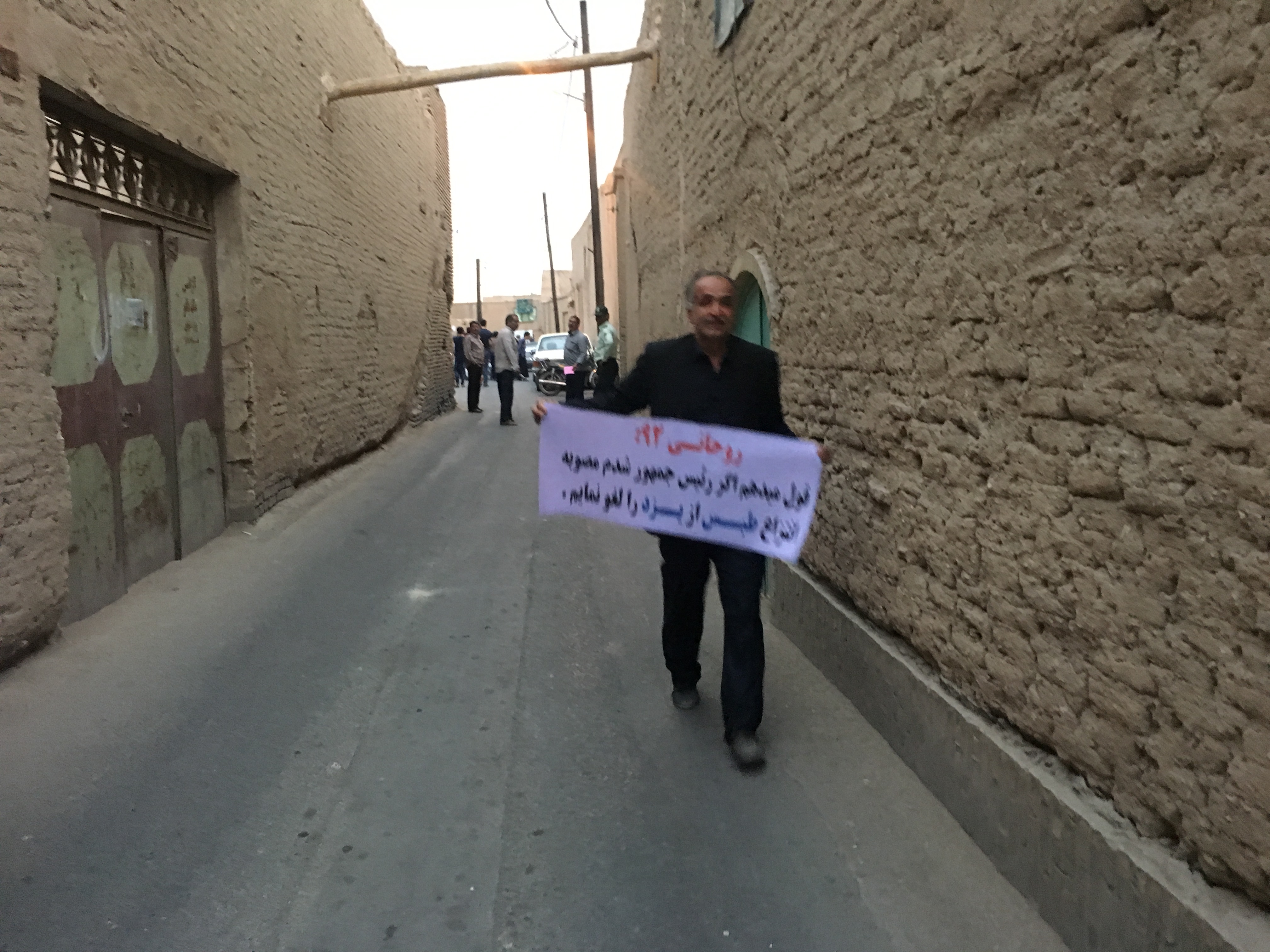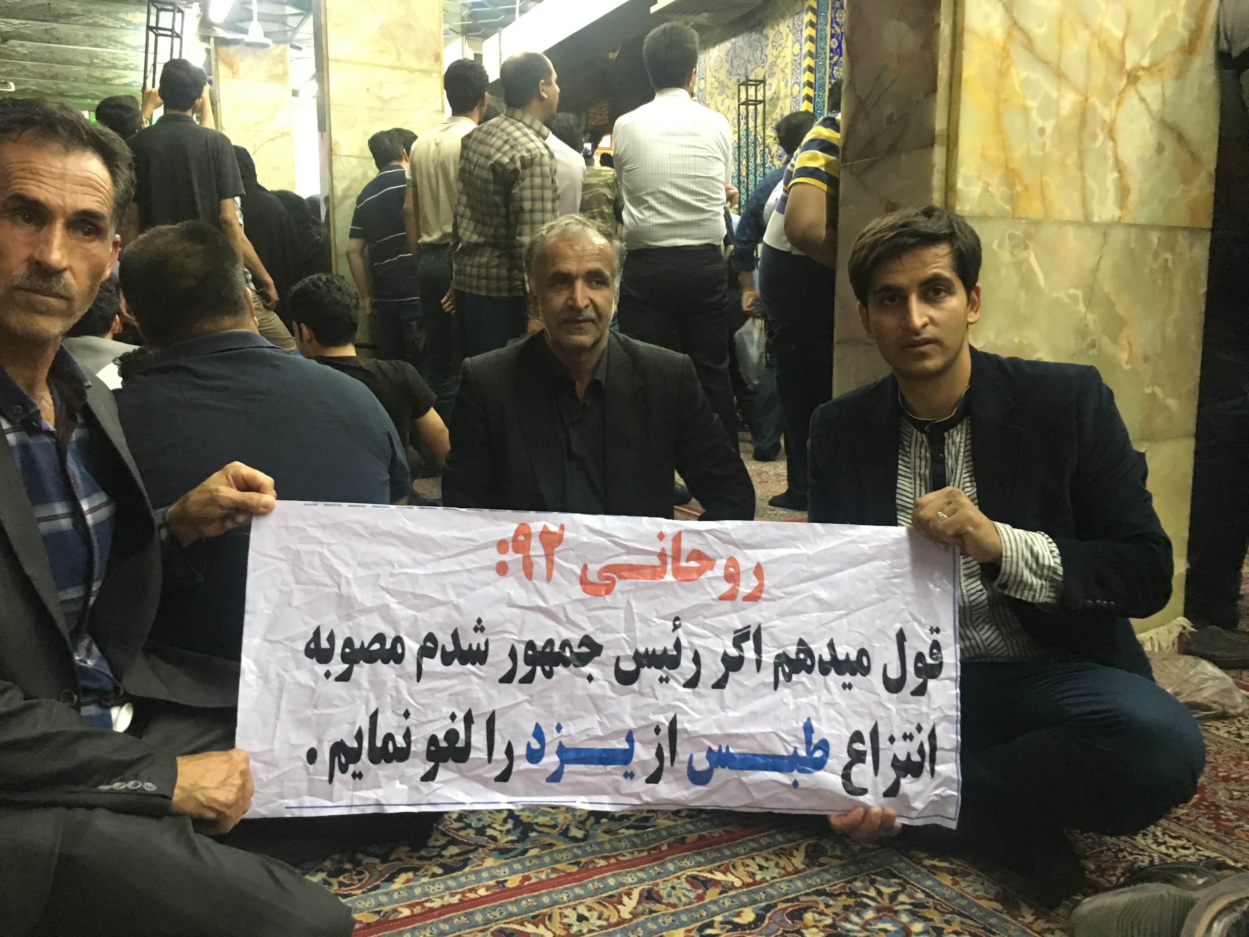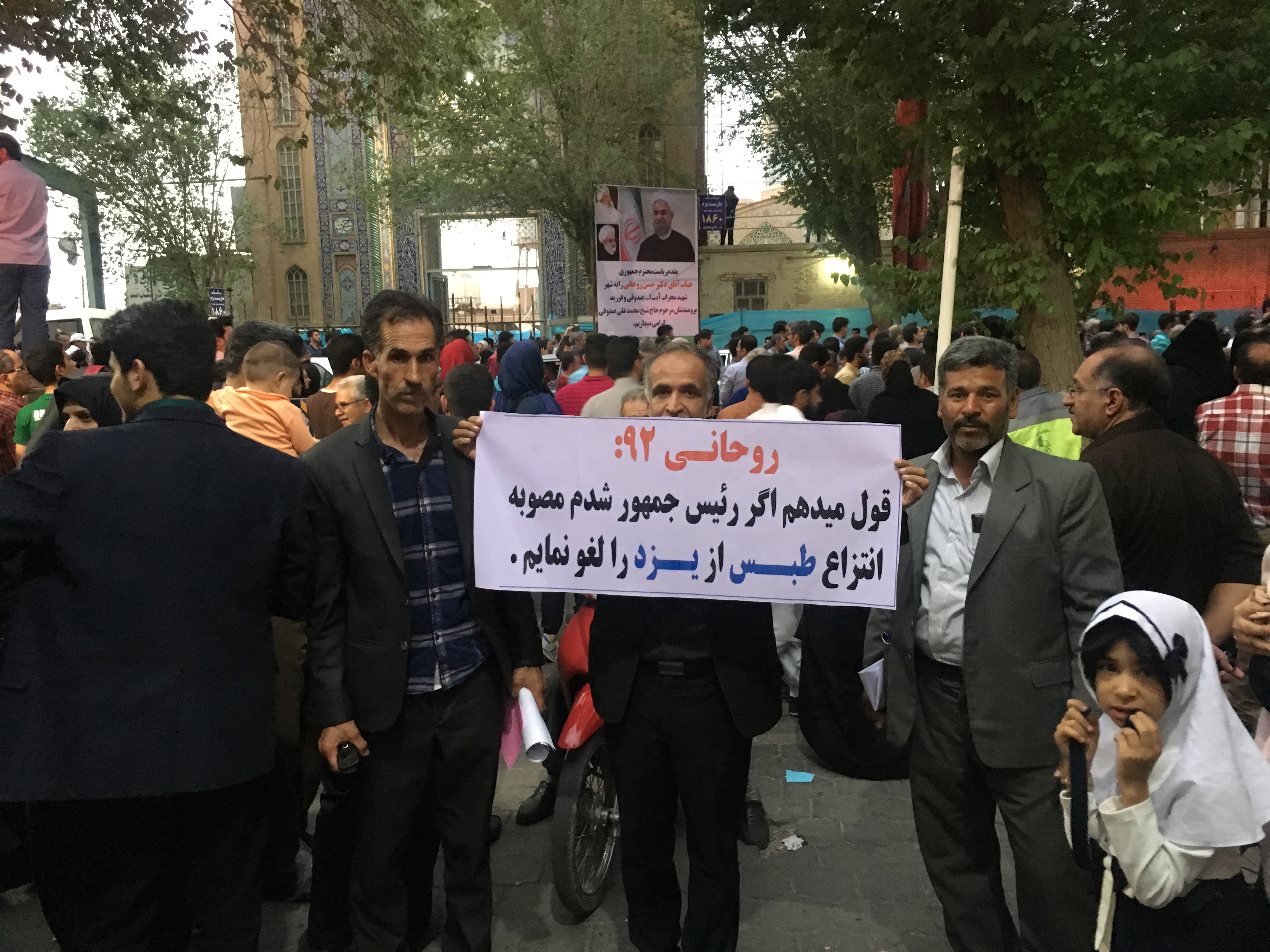 طبسي ها با انداختن شال بنفش بر گردن خود با همراهي و همكاري مردم يزد علاوه بر حمايت خود از روحاني علي رغم عملي نشدن قول انتخاباتي وي خواستار توجه مسئولين و ارسال پيام روشن خود براي عملي شدن خواست مردمي و حداكثري خود شدند .