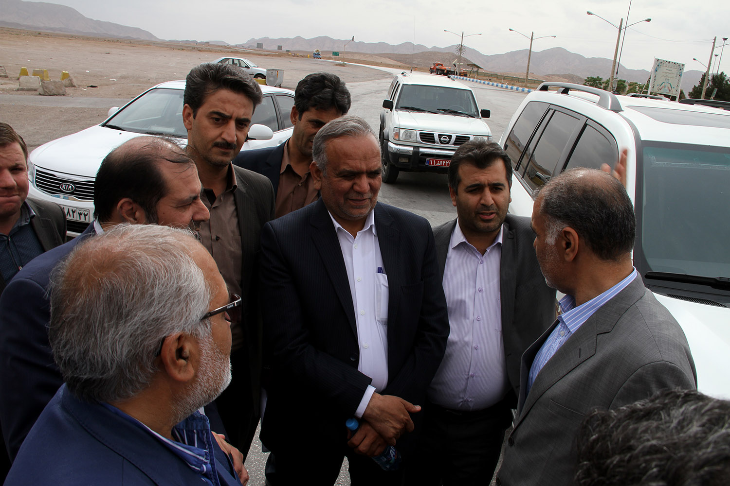 دیدارمعاون استانداروفرماندارویژه طبس، مهندس صادق کلانی، آخوندی رئیس اداره راهداری، مهربان رئیس اداره راه وشهرسازی وبخشداردیهوک درسه راهی شهید زارع بشرویه با امینی معاون برنامه ریزی مدیریت منابع وزیرراه وشهرسازی