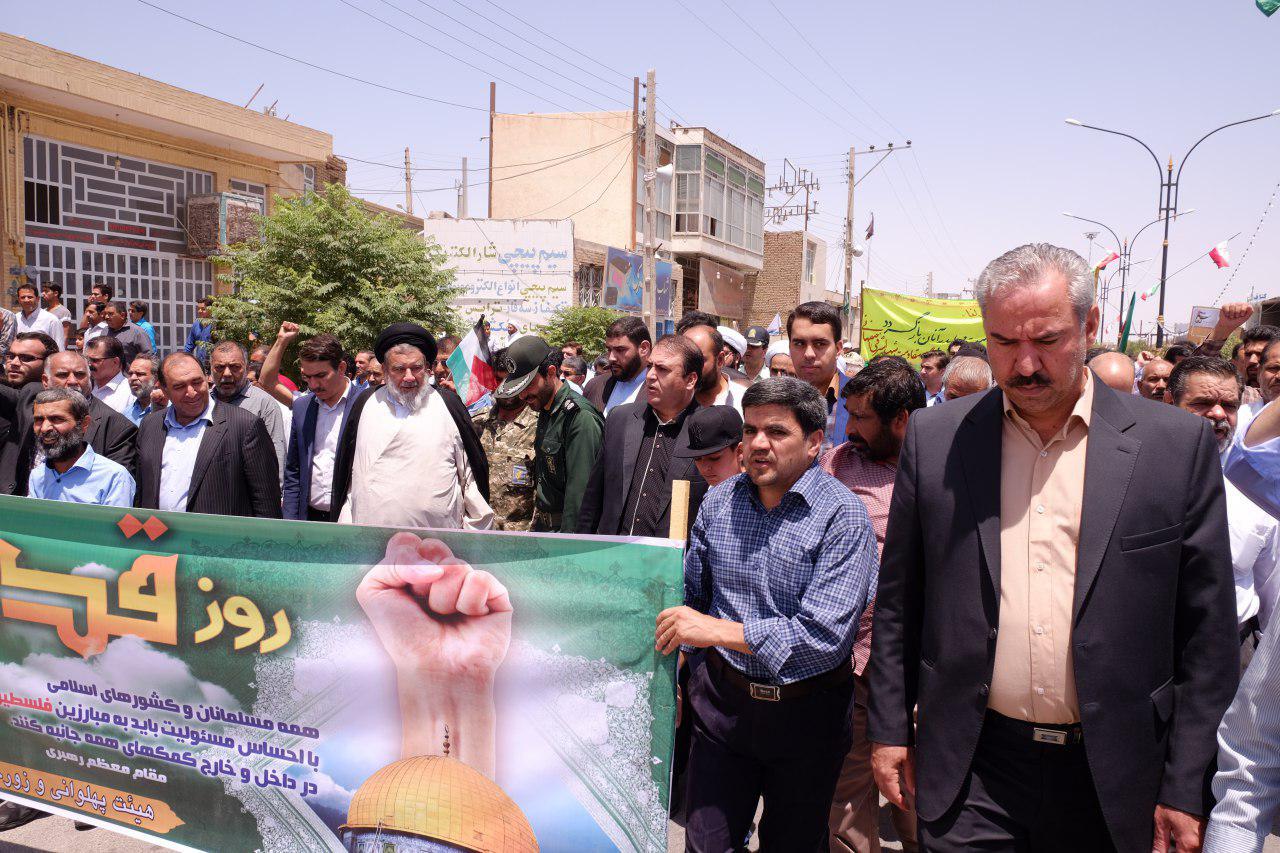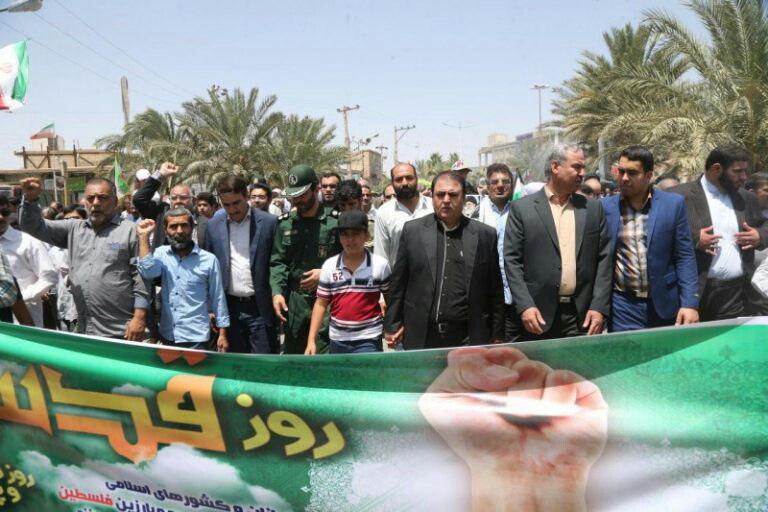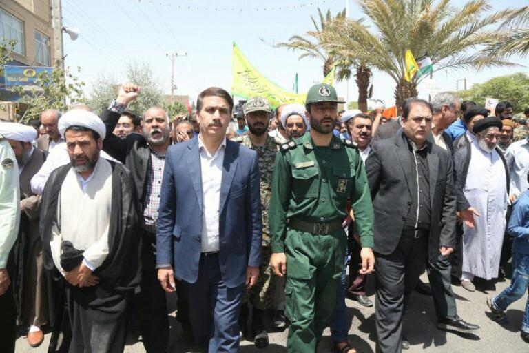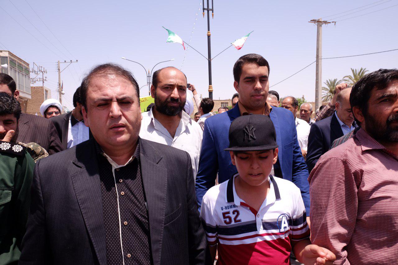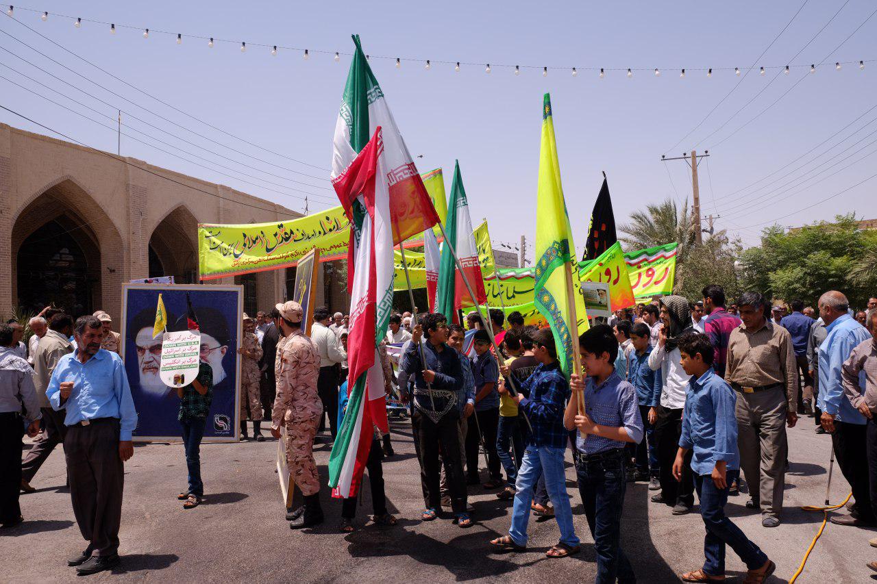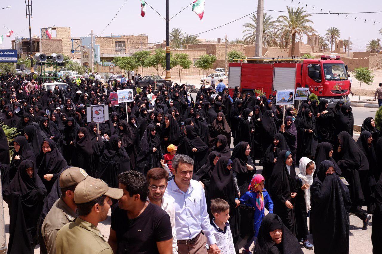 مردم روزه دار شهرستان بافق به همراه امام جمعه و فرماندار بافق و دیگر مسئولان این شهرستان، با حضور باشکوه و حماسی خود در آفتاب سوزان این شهر بار دیگر بر عهد خود با امام راحل پایبند و با آرمان ها و ارزش های انقلاب اسلامی و قدس شریف تجدید بیعت کردند.