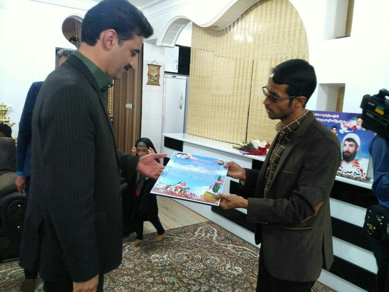 دیدار طلائی مقدم معاون استاندار و فرماندار ویژه شهرستان طبس به اتفاق ریاست بنیاد شهید وامور ایثارگران شهرستان طبس و سایر مسئولین از خانواده شهید روحانی حسن رمضانی بمناسبت هفته تربیت بدنی