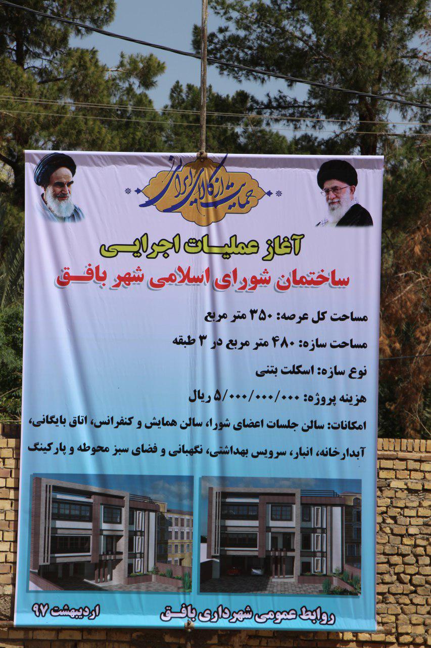 رئیس شورای شهر بافق در حاشیه آیین کلنگ زنی ای پروژه گفت : متاسفانه شهرستان بافق بعد از گذشت ۴ دوره از شورای اسلامی شهر، تاکنون فاقد ساختمان شورا بود که با پیگیری شورای پنجم و مساعدت فرماندار یک قطعه زمین به مساحت ۳۵۰ متر در اختیار شورا قرار گرفت.