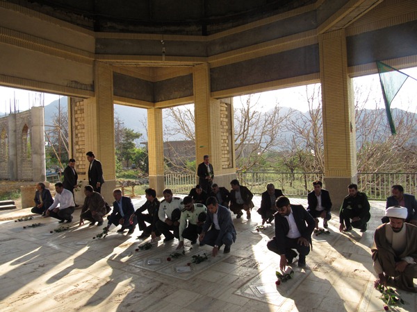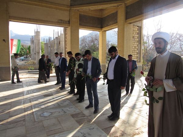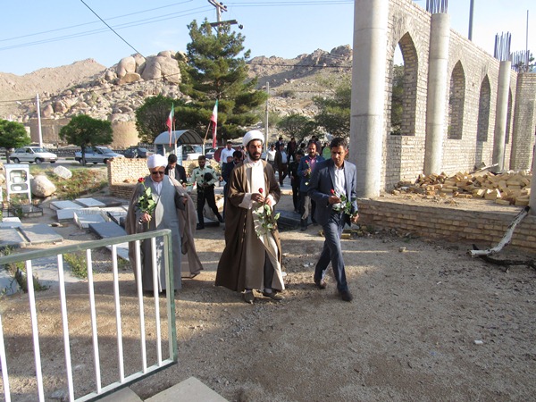 حاضرين در اين آيين با حضور بر سر مزار شهدا با قرائت فاتحه، نثار شاخه هاي گل و عطر افشاني ضمن ادای احترام به مقام شامخ شهدا ، یکبار دیگر با آرمان های امام راحل و شهداي والامقام تجدید میثاق کردند.