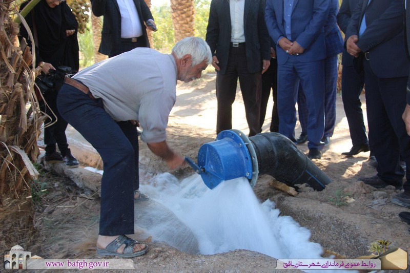 به گزارش روابط عمومی فرمانداری شهرستان بافق؛ همزمان با هفته دولت طرح آبیاری کم فشار در چاه شهید باهنر و مزرعه دشت خون با اعتباری بیش از هفت میلیارد و ۱۱۲ میلیون ریال با حضور معاون هماهنگی امور عمرانی استاندار یزد، مدیران کل دفتر امور روستایی و شوراها و دفتر فنی استانداری، فرماندار بافق و جمعی دیگر از مسوولان استان و شهرستان به بهرهبرداری رسید.