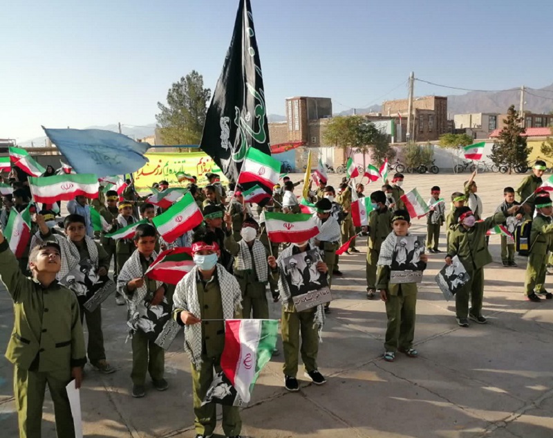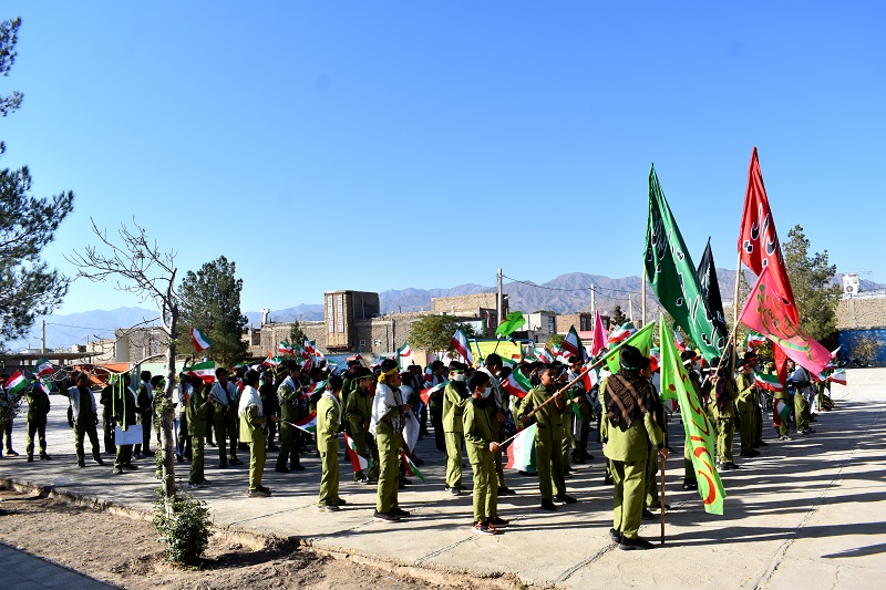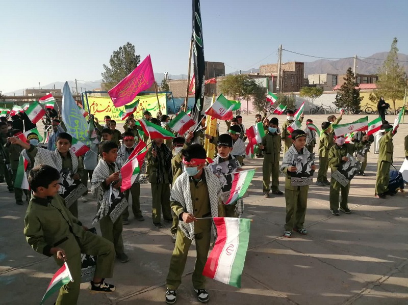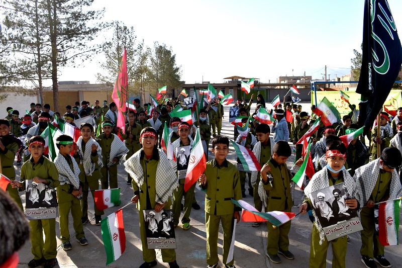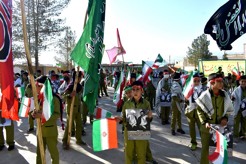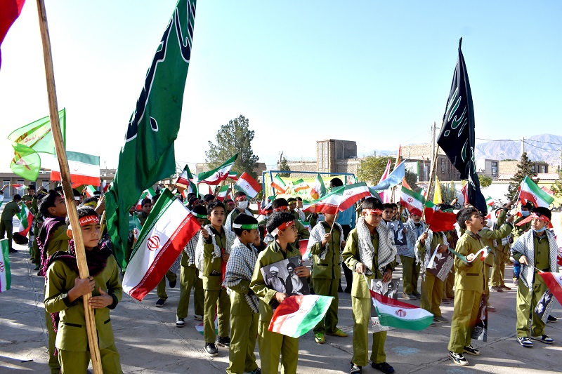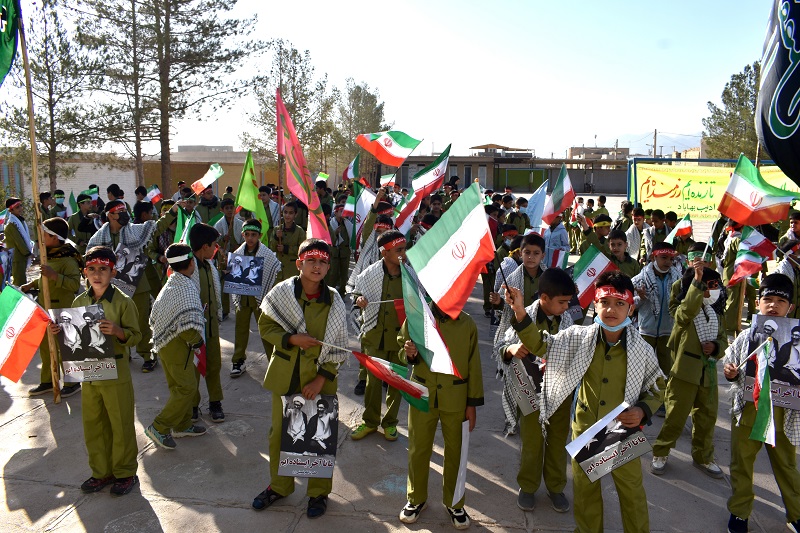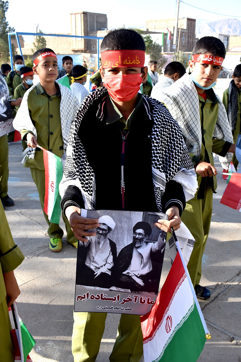 دانش آموزان با دردست داشتن تصویر رهبر معظم انقلاب اسلامی و بستن پیشانی بند با سردادن شعارهائی حمایت خودرااز ولایت فقیه ونظام مقدس جمهوری اسلامی اعلام داشتند .