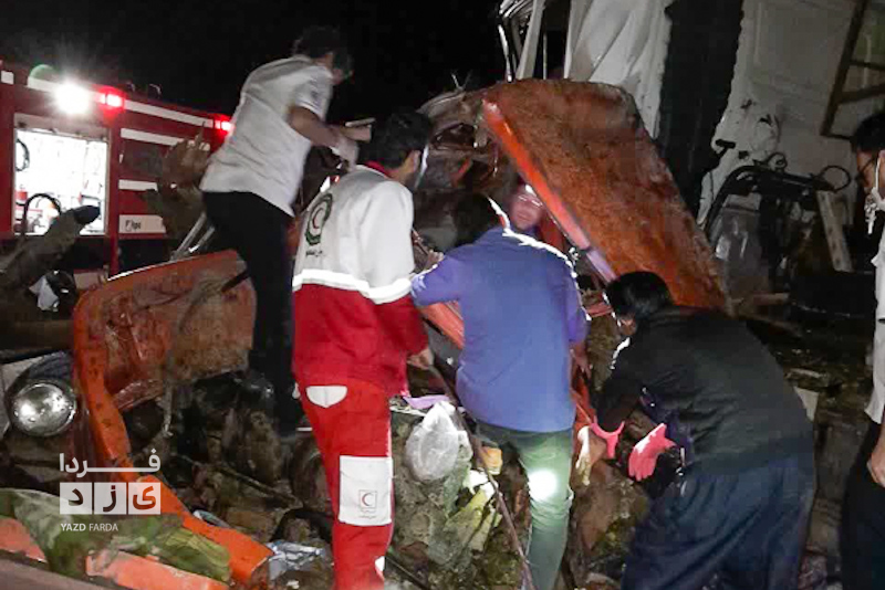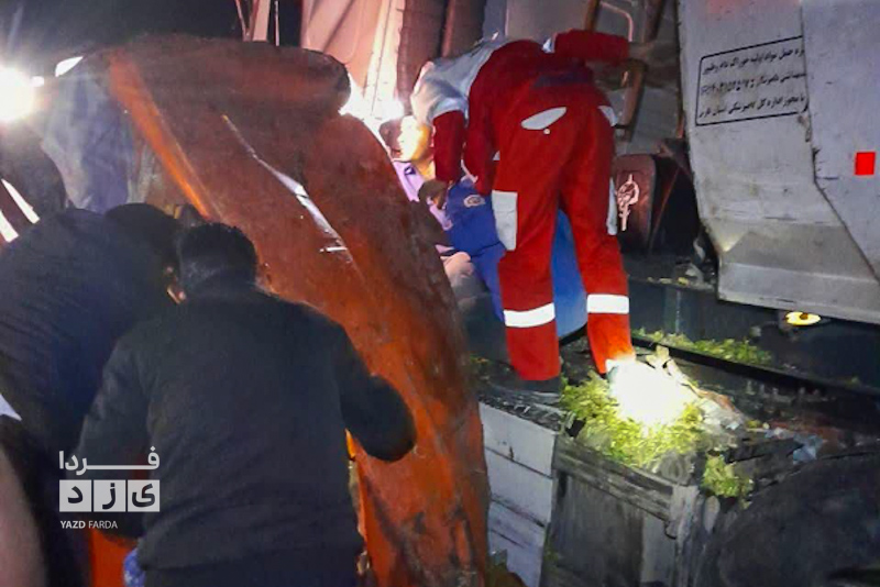مهدی زارعی رئیس جمعیت هلال احمر شهرستان خاتم اظهار داشت : بنا به اطلاع اورژانس مبنی بر تصادف سه دستگاه خودرو سنگین ( کامیون و تریلی ) ساعت 01:50 بامداد امروز صبح در کیلومتر 15 محور مروست به مهریز بلافاصله تیم امداد و نجات پایگاه مسجد ابوالفضل مروست به محل حادثه اعزام شدند.