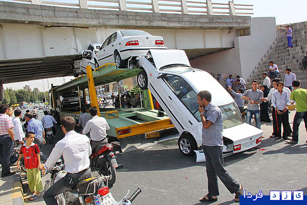 گزارش تصویری؛ برخور تریلر حامل خودرو با پل شهدای اصناف (پل همافر)
