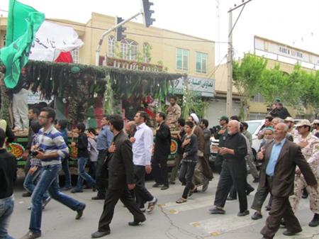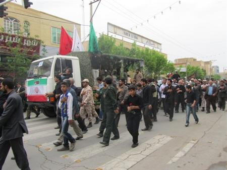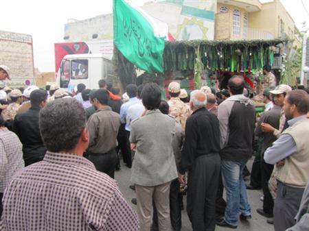 شهيد پرور شهر اشکذر از ميدان بسيج تا مسجد الرضا ء کاروان شهداء را مشايعت کردند و به نوحه خواني و عزاداري پرداختند.