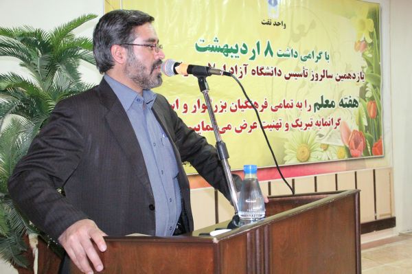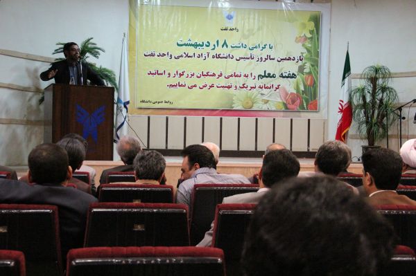 به گزارش روابط عمومی فرمانداری تفت، " ابوالقاسم دهقان" در این مراسم که در سالن دانشگاه آزاد اسلامی تفت برگزار شد با گرامیداشت سالروز شهادت استاد علامه مطهری(ره) و روز معلم گفت: معلم همچو شمعی پرتلالو ‌ایمان و اعتقاد الهی را بر قلبهای روشن حک کرده و سیاهی جهل را از دل‌ها زدوده و زلال دانایی را در وجود انسانهای خالص جاری می‌کند.