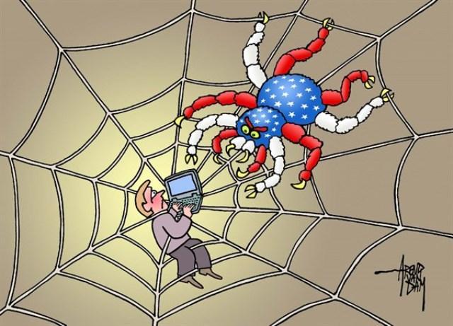 کاریکاتور آرن ون دام - عنکبوت بزرگ (دولت آمریکا) شما را تحت نظر دارد