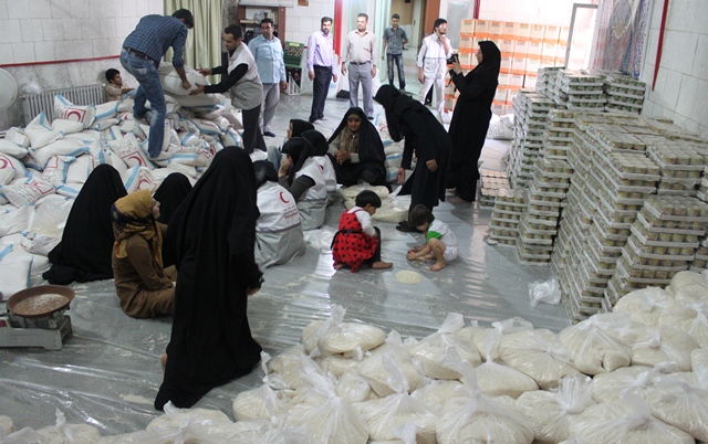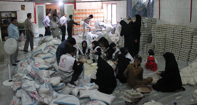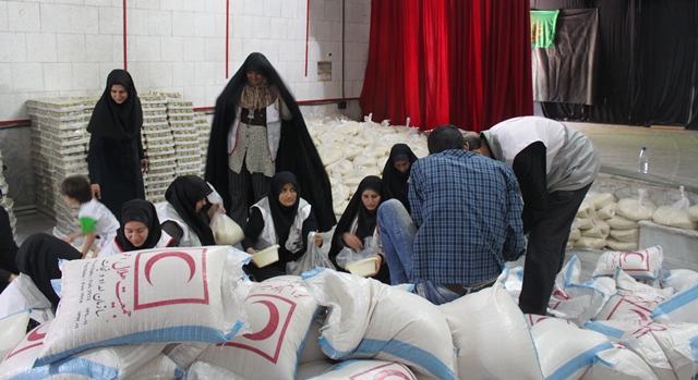بسته بندی و آماده سازی سبد های غذایی طرح همای رحمت جمعیت هلال احمر شهرستان یزد جهت توزیع میان خانواده های نیاز مند از دریچه دوربین محمد حسین زارع بیدکی به تصویر کشیده شده است.