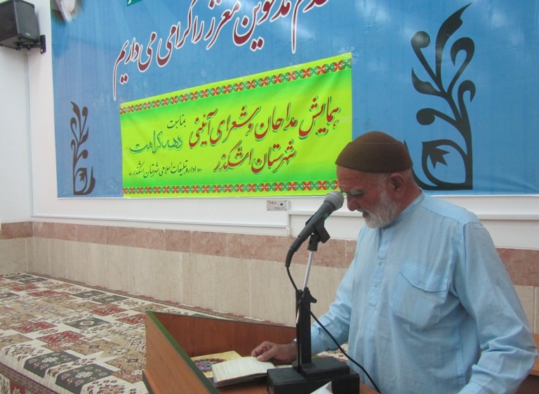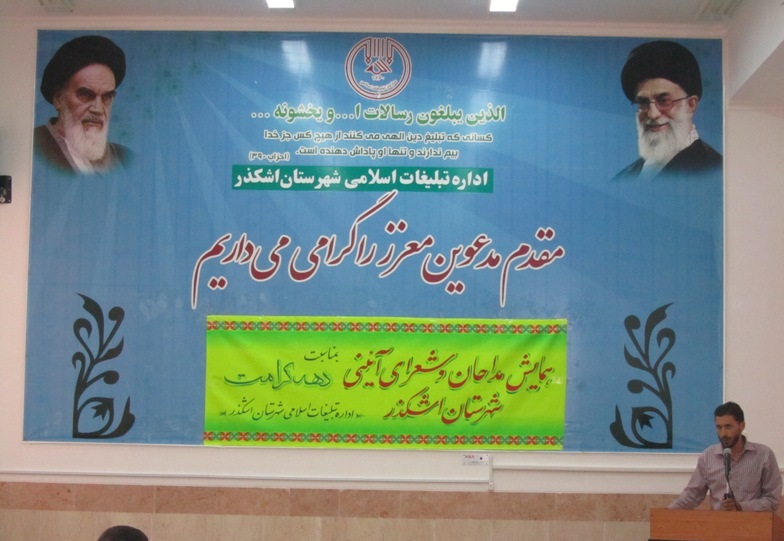 در این همایش، چند تن از شعرا و مداحان شهرستان به اجرای برنامه پرداختند. شعر خوانی حاج اسماعیل طالبیان، حاتمی، احسانی، و خانم منتظری و مداحی حاج محمد درخشی و همچنین سخنرانی حاج محمود فتوحی، نایب رئیس کانون مداحان شهرستان اشکذر از این برنامه ها بود.