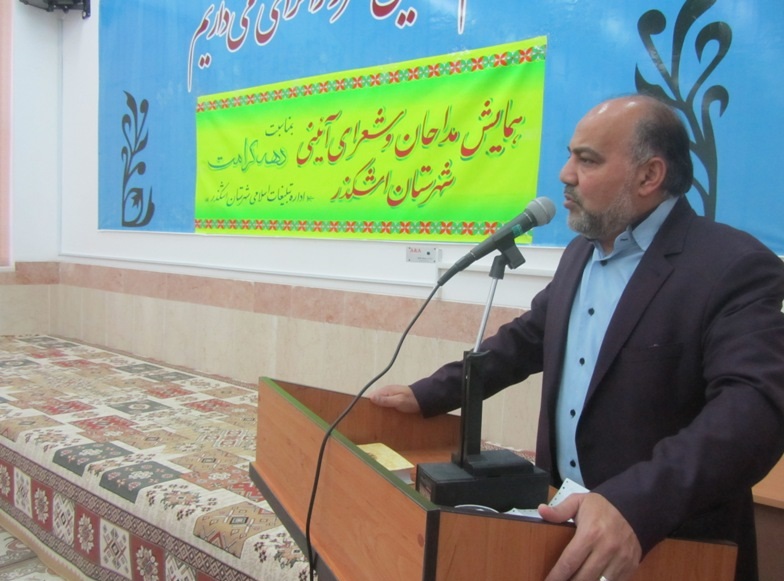 وی به کانون مداحان شهرستان هم توصیه کرد از منابع مختلف از جمله از اداره تبلیغات اسلامی رزق فرهنگی در قالب کتاب، بروشور بخواهد و آن  را بین مداحان و شاعران توزیع کند.