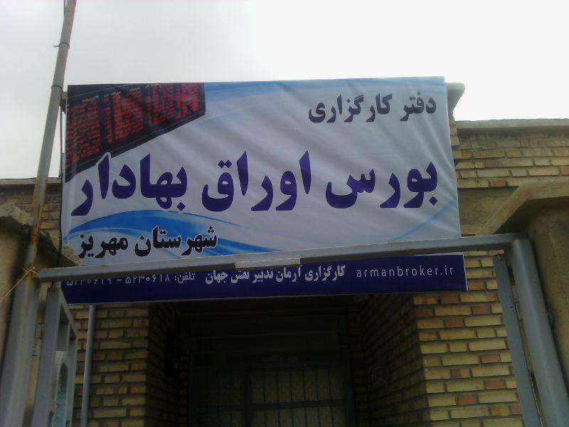 سید محمد رستگاری فرماندار مهریز در تاریخ 93/5/10از افتتاح دفتر بورس اوراق بهادار در شهرستان مهریزخبر داد و گفت:فعالیت نمایندگی بورس در این شهرستان خیلی ضروری است که امیدواریم با همکاری مسئولان امر هرچه زودتر اجرایی شود و سرانجام در تاریخ 93/9/26دفتر بورس مهریز افتتاح شد .