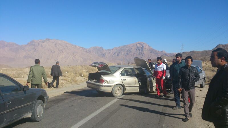 به گزارش روابط عمومی جمعیت هلال احمر استان یزد / سید جواد میرحسینی معاونت امداد و نجات جمعیت هلال احمر استان یزد گفت : صبح امروز مورخ19/10/93 در 30 کیلومتری شهرستان تفت ،محله دشتک سانیج یکدستگاه خودروی سمند و یکدستگاه خودروی 405 بعلت سرعت زیاد و سبقت غیرمجاز برخورد کرده بودند که نجاتگران پایگاه شهرستان تفت برای امداد رسانی به مصدومان به محل تصادف اعزام شدند.
