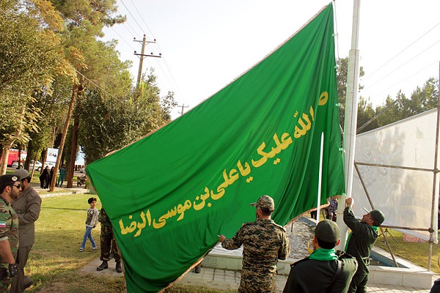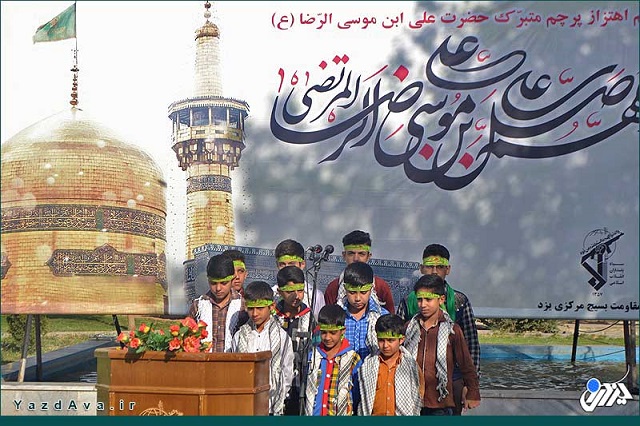 یزد فردا :در آستانه میلاد حضرت علی ابن موسی الرضا ع پرچم متبرک به حرم رضوی با حضور خدام حرم منور علی ابن موسی الرضا ع در میدان امام رضای یزد به اهتزار در آمد .
