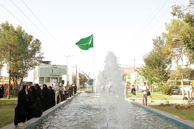 گزارش تصویری :اهتزاز پرچم متبرک حرم رضوی درمیدان امام رضا (ع) یزد
