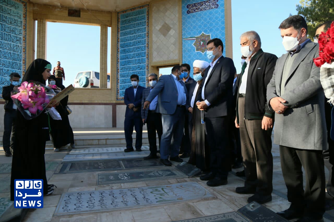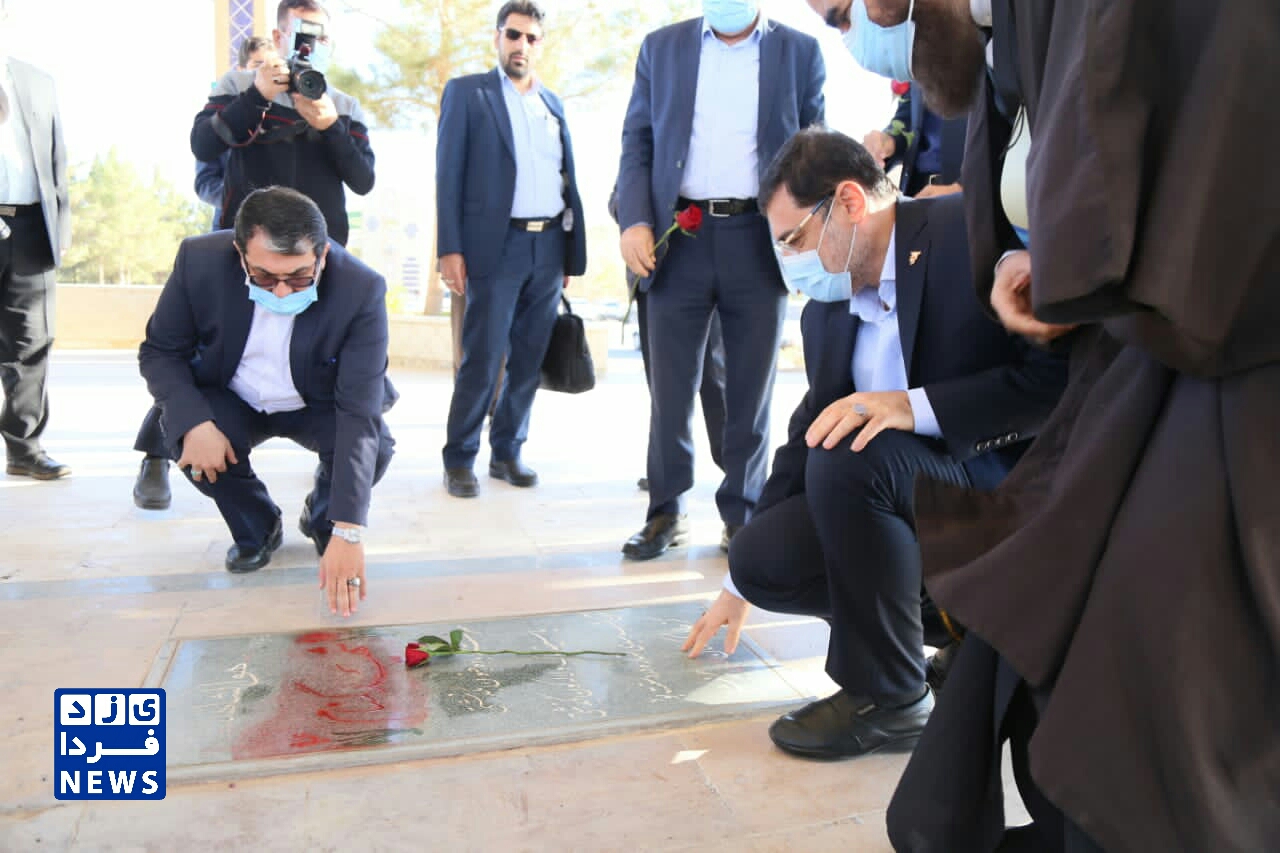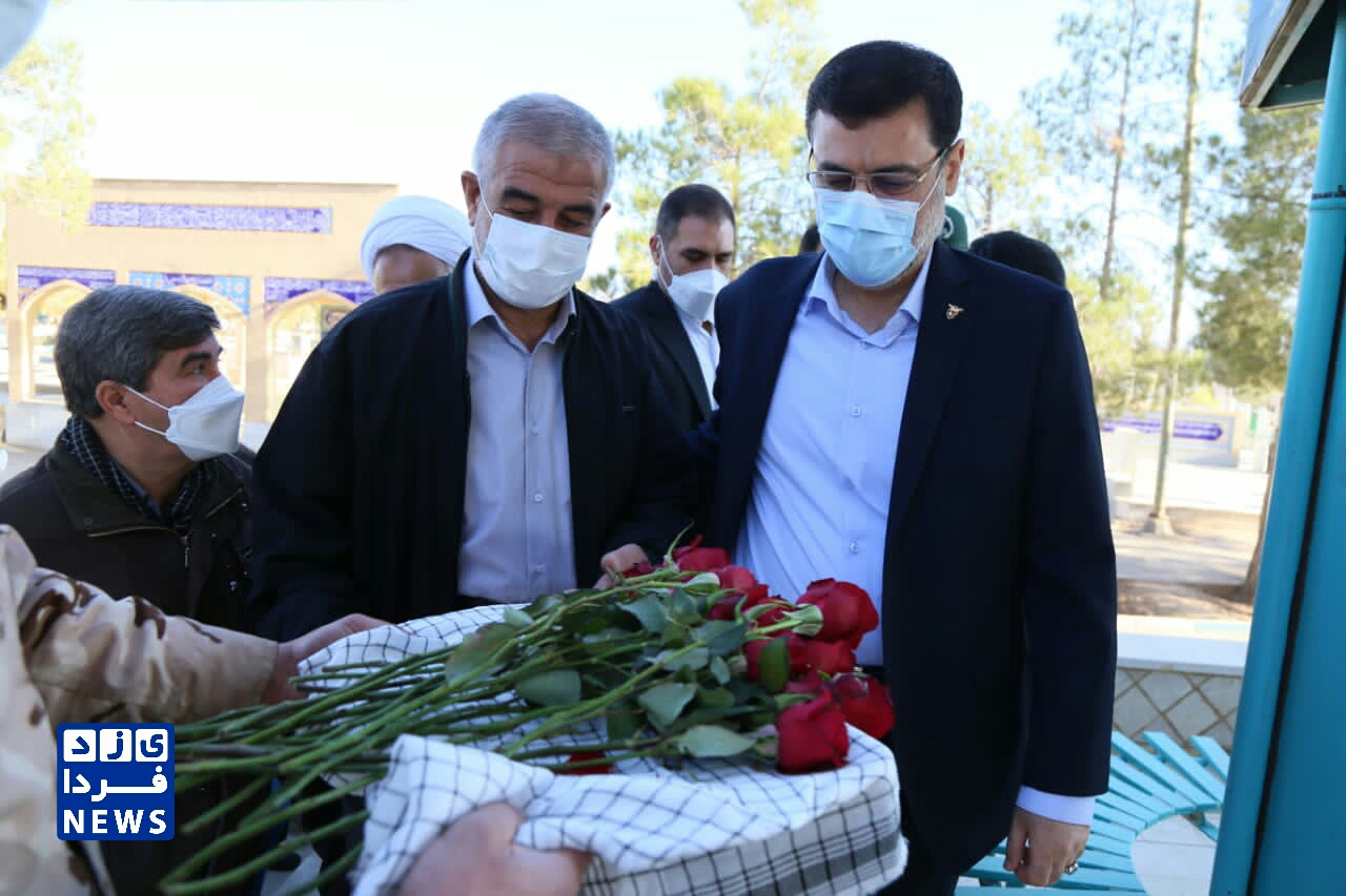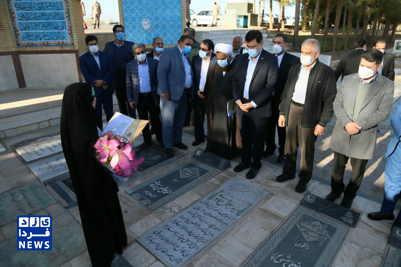 ادای احترام قاضی زاده هاشمی رئیس بنیاد شهید و امور ایثارگران به مقام شهدای یزد