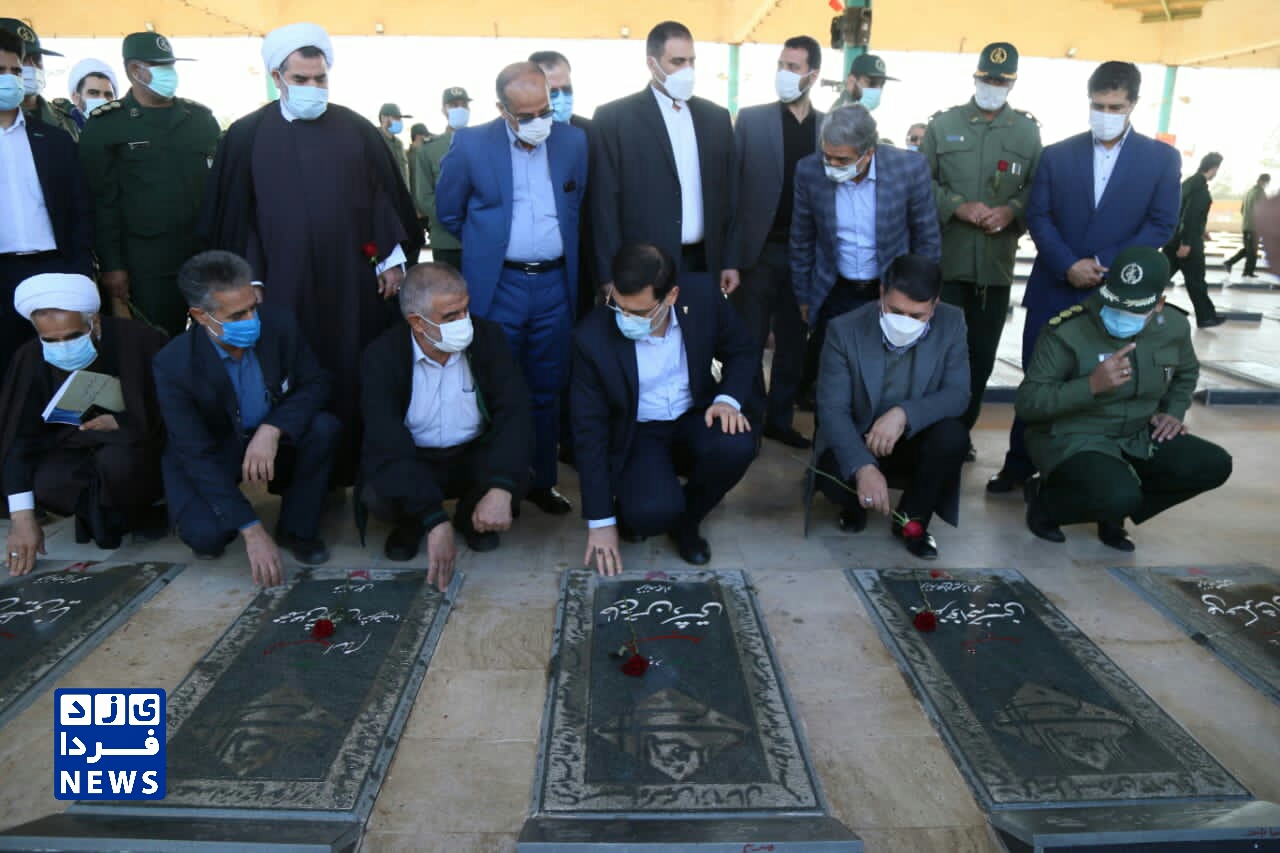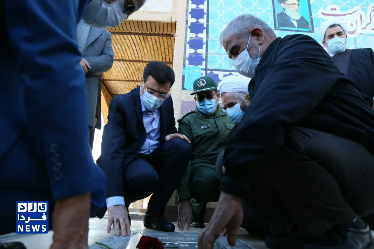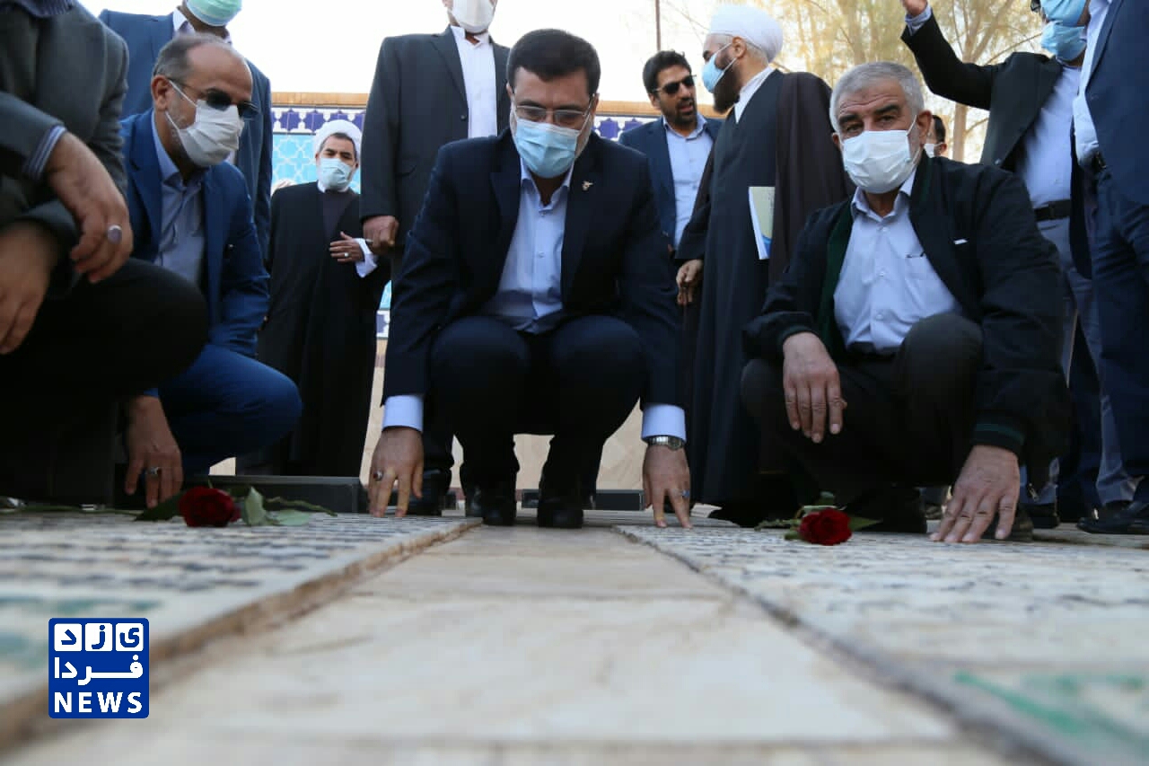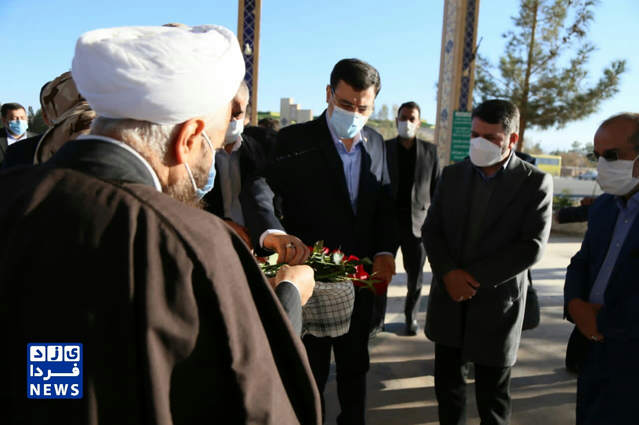 ادای احترام قاضی زاده هاشمی رئیس بنیاد شهید و امور ایثارگران به مقام شهدای یزد