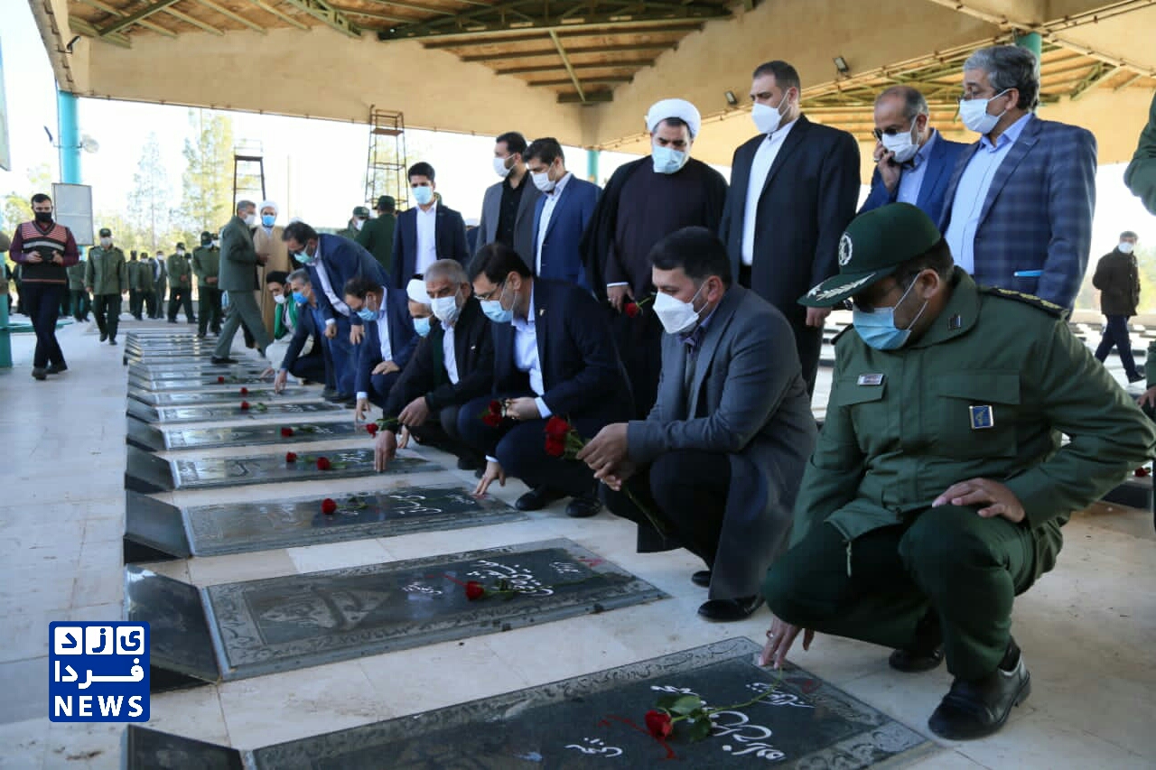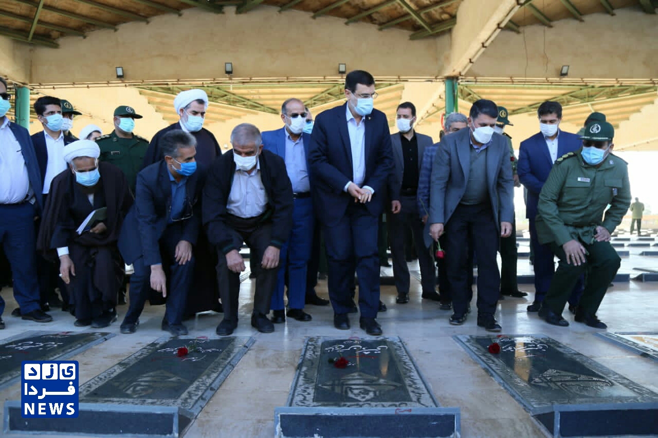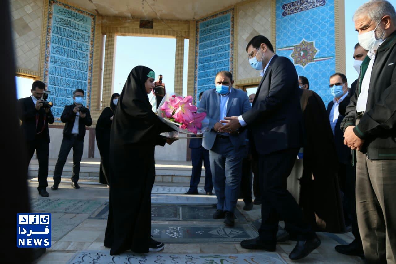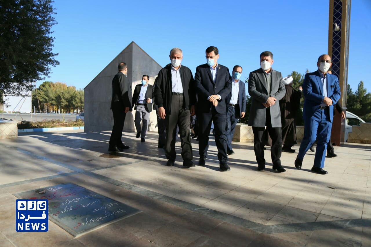 ادای احترام قاضی زاده هاشمی رئیس بنیاد شهید و امور ایثارگران به مقام شهدای یزد